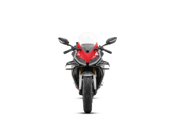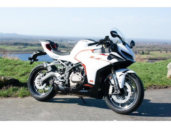 The QJMOTOR SRK 421 RR has officially arrived to shake up the mid-weight SuperSport category, blending aerodynamic engineering with high-speed styling. The SRK 421 RR fuses a screaming four-cylinder soundtrack with precision control to deliver an unprecedented thrill for those chasing the ultimate ride. The heart of the SRK 421 RR is a 421cc inline four-cylinder, 16v DOHC engine producing 77Bhp (57kW) at 14,000rpm. Designed for linear and smooth power delivery, the engine is beginner-friendly while offering high-rev thrills for track-inspired performance. A peak torque of 39Nm is delivered at 13,000rpm, but still produces enough low-end urgency to ensure responsive delivery on city streets. The engine also features DLC-treated valve tappets, an electroplated ceramic cylinder and a forged alloy steel camshaft. High-end components are also used from famed Japanese companies, including FCC paper-based clutch plates, NTN bearings, RIK piston rings, and Daido crankshaft bearings. The SRK 421 RR has been crafted by the designers of some of the most acclaimed motorcycles and features original mecha-inspired styling that creates a futuristic presence. Its aerodynamic bodywork includes bold lines, geometric cuts, and a hollowed tail section that channels airflow to reduce drag. The aggressive front face is equipped with a Ram Air intake to ensure efficient combustion and enhanced power output at speed. Secure this bike with just £200 deposit. On the road cost of £300 will be charged and includes PDI, 1st reg fee and 12 months road tax. Low rate finance & mainland UK delivery available.