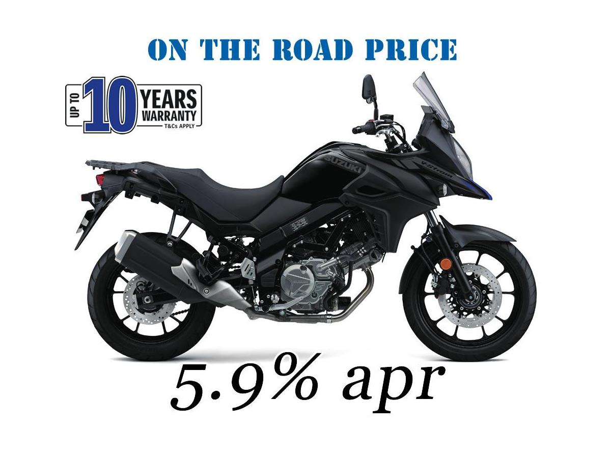 The very last few 650 V-Stroms. Brand new unregistered. Black bikes only available @ £6695 saving £1704 on the list price. (2 grey and 2 blue available (7 January) @ just £6995 saving £1404) Suzuki’s V-twin 650cc adventure tourer. The industry standard. Take it to work all week and then take it on your adventures through twisty B roads to long distance motorway mile munching. Nice touches such as Suzuki’s clutch assist, and easy start systems. The 645cc DOHC V-Twin is a masterpiece of Suzuki engineering which has an evolving history. For the new 650, this unit has been tuned for generous low to mid-range torque for practical use while maintaining an exhilarating top-end. 650cc 90 degree V-Twin engine. Bags of torque. Reserve one online on our website showroom page at cupar.co.uk Available in black at just £6695, saving £1704; VERY LIMITED STOCKS. Take it with low rate subsidised 5.9% APR finance. Contact us for a finance quote to suit your budget.
