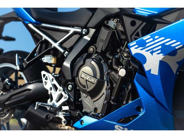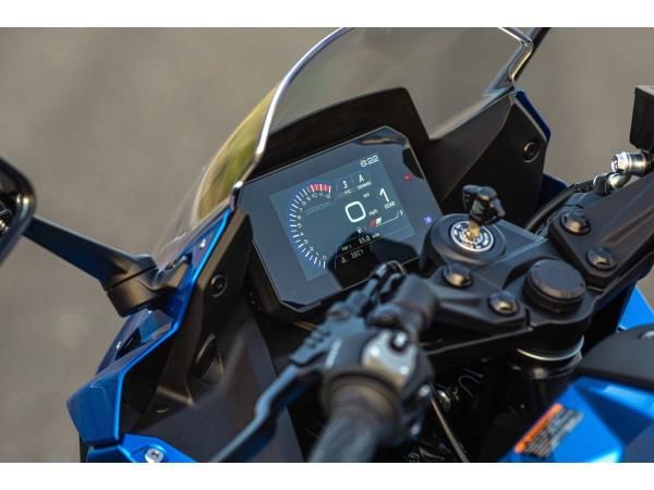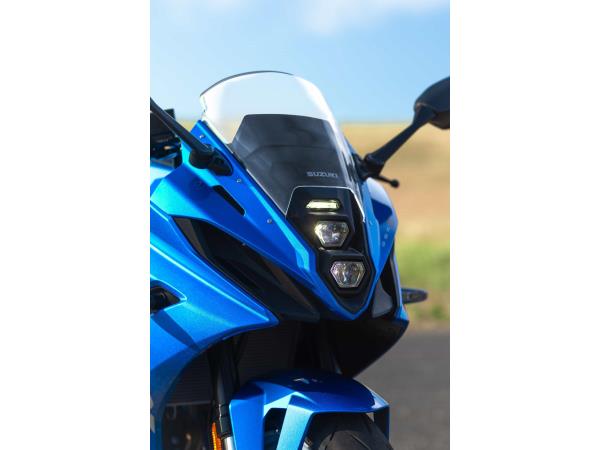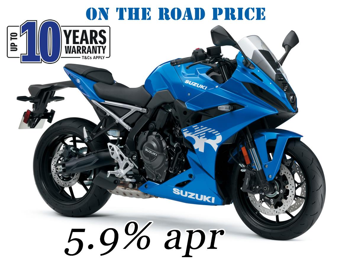 RRP – £8999, save £504, our price £8495 Immediately highlighting the R element of the new GSX-8R is its full fairing, wind tunnel-tested to increase aerodynamic performance and provide weather protection for the rider. Bold 8R logos adorn the side panels, while fairing-mounted mirrors also aid in reducing drag. Perched in the middle of the angular face is the recognisably GSX series stacked LED headlight, topped by an LED position light. The rear combination light is also full LED, as are the indicators. At the heart of the new GSX-8R is the 776cc parallel twin engine – which it shares with the GSX-8S – with its long stroke and 270° crankshaft design providing an abundance of low-down torque, usability, and flexibility, while a free-revving nature comes from a DOHC and four valves per cylinder. Peak torque is 78 Nm, delivered at 6800rpm, with peak power of 82.9PS coming at 8500rpm. The 270° crankshaft also provides a power delivery, character, and rumble reminiscent of Suzuki’s much-lauded V-twin ranges, while a patented cross balancer design ensures a smoothness, as well as aiding in a compact, lightweight engine design. A two-into-one exhaust system with dual-stage catalytic converter keeps the 8R conforming toEuro 5 emissions standards, and ends in a short, underslung silencer further enhancing the compact, slimline look.All of that is housed in a steel frame engineered for direct handling characteristics. Those handling characteristics are further enhanced by low, forged aluminium handlebars that providepositive control and a sporty riding position, placing more of the rider’s weight over the frontwheel. Bolted into the rear of the steel frame is a lightweight aluminium subframe and lightweight aluminium swingarm,Dealing with the increased weight bias towards the front, Showa provides the suspension, withSFF-BP* (Separate Function Fork – Big Piston) inverted forks and monoshock in the rear.Mounted radially to the forks are Nissin four-piston calipers, providing stopping power by biting310mm discs. Tyres are Dunlop Roadsport 2s. Aiding rideability, usability, and flexibility is a suite of electronic systems that includes a bi-directional quickshifter as standard, three selectable engine power modes, and three selectabletraction control settings, plus the ability to disengage the system entirely. There’s also Suzuki’s low RPM assist and easy-start function.The GSX-8R’s settings are easy to navigate via a single rocker switch on the left-handhandlebar, with the information displayed clearly on a colour 5” TFT screen. Reserve one online on our website showroom page at cupar.co.uk Just £8495, save £504. OTR pricing including registration, 12 months tax, 12 months AA cover, 36 months factory warranty, a full tank of fuel, Alphadot security marking, and our 30 day 500 mile money back guarantee (subject to 10% of the purchase price with new bikes). Available now with 5.9% APR PCP & HP, for up to 3 years with £1000 Deposit