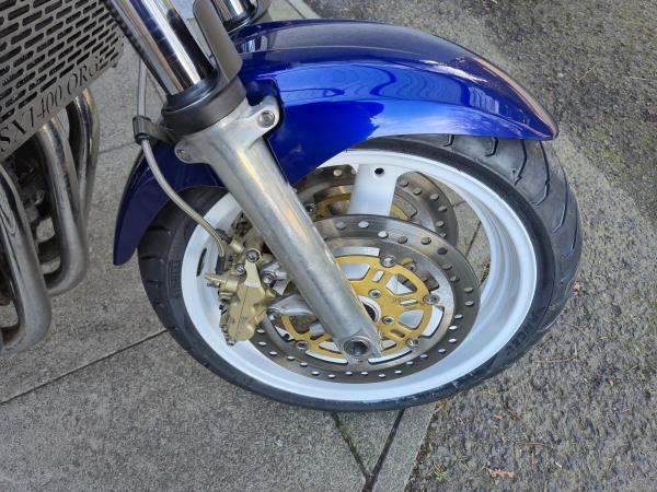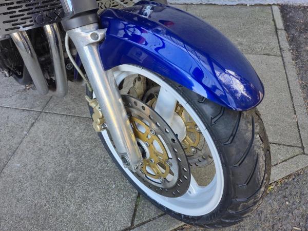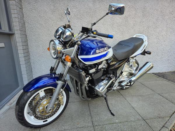 Suzuki GSX1400 We sold this when it was brand new back in 2002. it has had 3 owners from new. Hpi clear. We have just completed a full valve clearance service and fitted 2 brand-new tyres. Braided lines, hugger, engine bars and radiator guard have been fitted. It’s too old to be perfect, but by Jove it’s nice It comes with a 12-month warranty, 12 months MOT and a full tank of petrol. Low rate finance & UK mainland delivery available. Call the sales team on 01334 655707