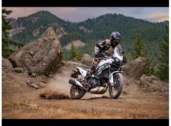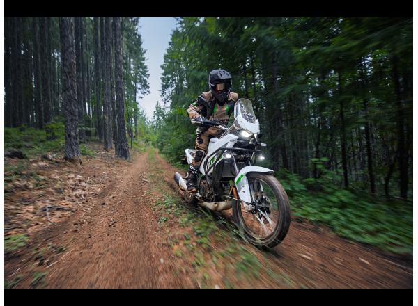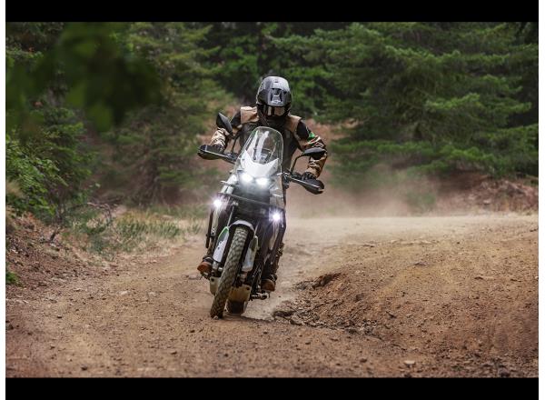 Exploring the next dirt road is an opportunity for riding enjoyment thanks to a well-balanced chassis and light, straightforward handling. The well-thought-out riding position lends the KLE500 a natural feel whether standing or sitting, while seamless bodywork lets the rider move around freely. A rider-focused and highly controllable character makes the KLE500 the ideal choice for any long adventure ride.
