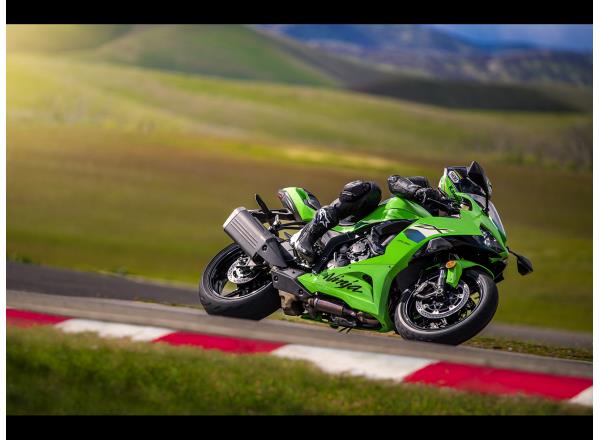 The advantage offered by the Ninja ZX- 6R’s 37 cm3 greater displacement is significant for real world riding exhilaration. Greater performance across the rpm range is welcome when sport riding, both on back roads and on the racetrack. But stronger low and mid-range torque compared to “ordinary” mid-size supersport models also offers increased usability in everyday street riding situations, like riding in stop-and-go city traffic or accelerating to pass another vehicle on the highway. Updates for 2024 include emissions-related adjustments.