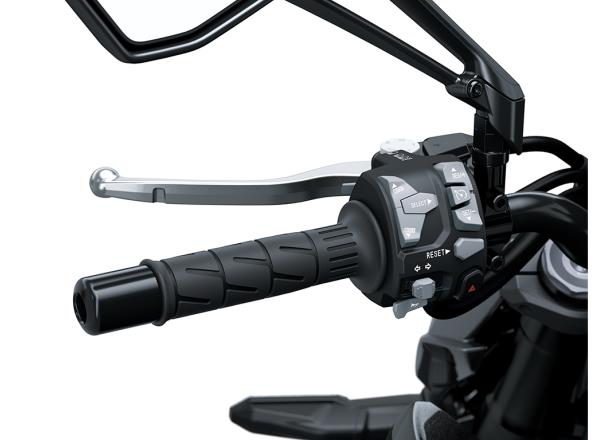 Kawasaki’s cruise control system allows a desired speed to be maintained with the simple press of a button. Once activated, the rider does not have to constantly apply the throttle. This reduces stress on the right hand when traveling long distances, enabling relaxed cruising and contributing to a high level of riding comfort.