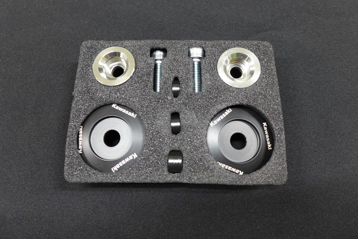Unpainted stainless steel bobbin with additional ring to protect the rear swingarm from scratches.