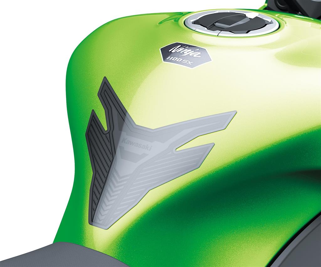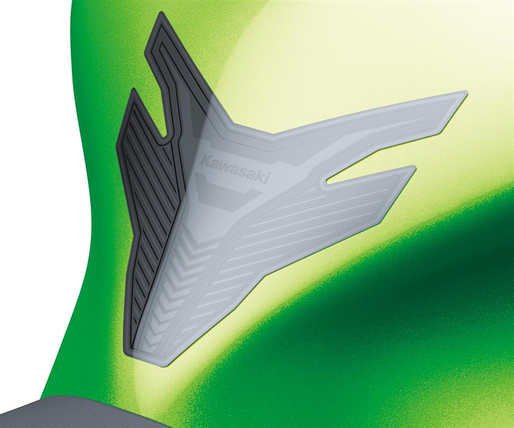 Black foil tank pad with Kawasaki logo for improved protection against scratches.