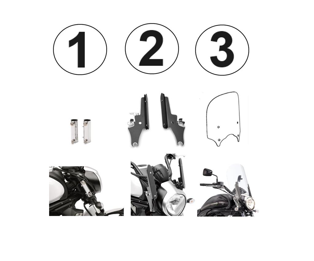 This 3 part Kawasaki Quick Release (KQR™) windshield kit with lock allows for easy installation or removal of windshield once installed.