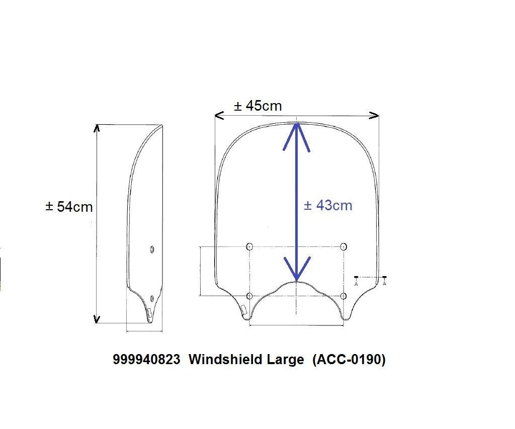 Windshield large (Height = 54cm, width = 45cm. Effective = 43cm. See image)
